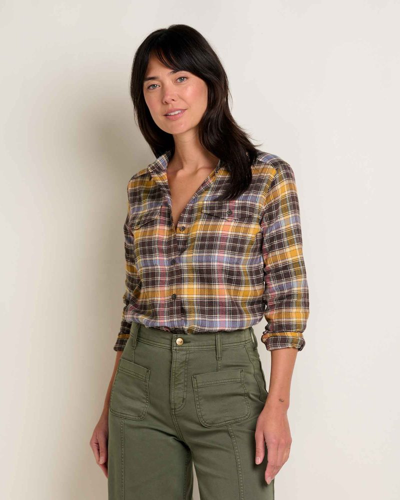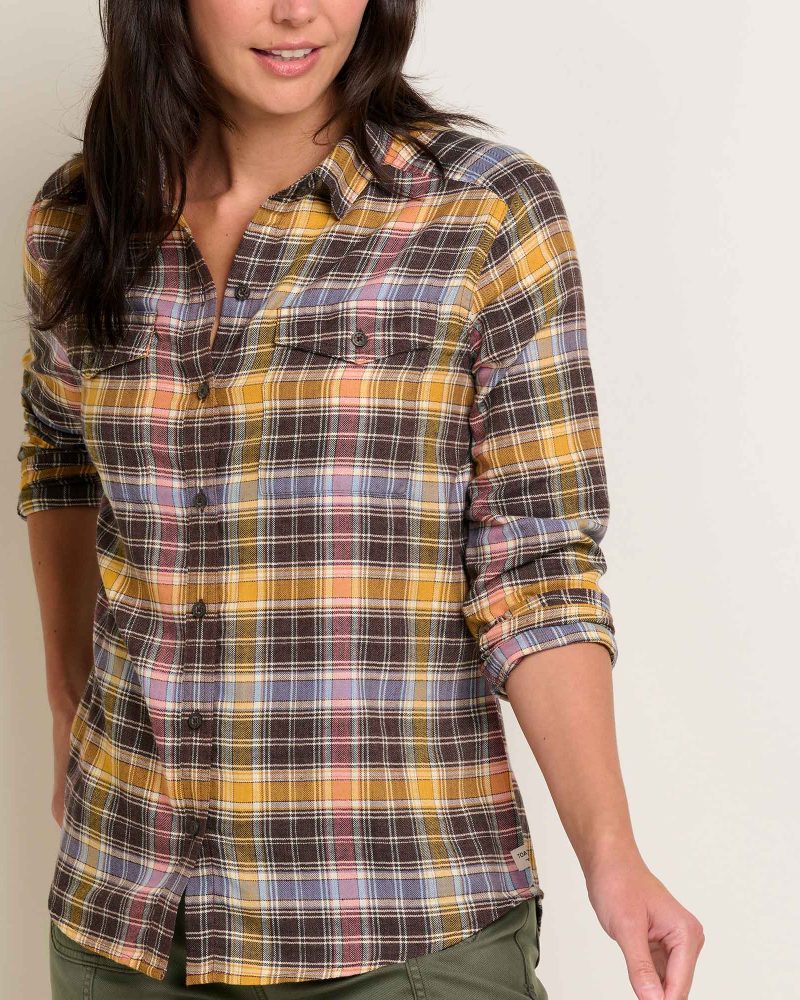 A flannel shirt fit for an outdoor queen. Ours is a lightweight herringbone weave available in epic color combos made better by recycled polyester.